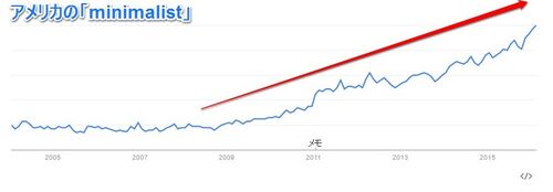 日本でミニマリストが注目されるようになったのはなぜでしょうか?ミニマリストがアメリカから日本に伝わってきたことを調べるために「Google トレンド」を利用した検索傾向の調査しました。